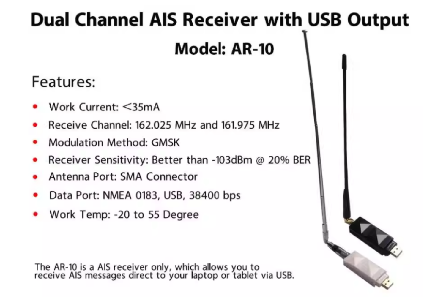 Matsutec Dual channel AIS Reciever with USB Output Model AR-10